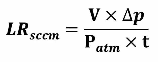10. 將壓力換成標(biāo)準(zhǔn)狀態(tài)下的大氣壓力,就得到了sccm結(jié)果的泄漏率公式
